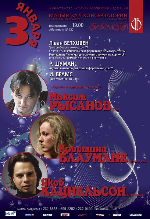 Яков Кацнельсон (фортепиано), Роман Минц (скрипка), Светлана Митряйкина (флейта)